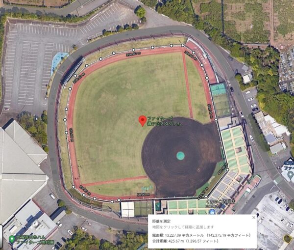 さて、その同じ広さであるかどうかを検証すべく、以前「甲子園が日本一広いは誤解?航空写真で比較してみた。」で比較したようにグーグルマップの機能を使って面積を比較してみた。