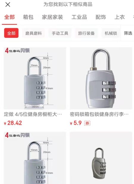 今回私は南京錠が必要になり、中国語名がわからず困っていたのだが、上記の画像検索の方法を思い出しあっという間に商品を注文することが出来た。