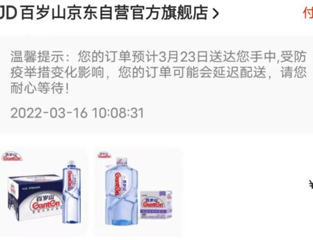 ネットショッピングサイトの京東(ジンドン)などで水の配達を頼もうとすると配達が一週間先などという表示が出るようになってしまった。