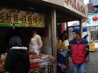 恐らくここが無錫一の繁華街、無錫の駅からも歩いて15分くらいでいける。地下街もあったりして、なかなか狭い通りに小吃や麺のローカルな小さい店が密集していて、そうかとおもえばマクドナルドやケンタッキー、そして無錫の小篭包で有名な王興記などもあり、無錫の食を凝縮したような空間である