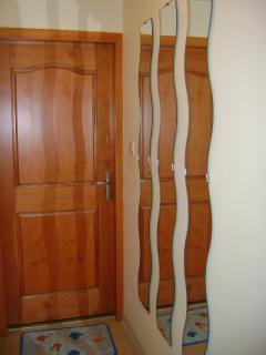 ただしさて、私の新しい部屋の鏡をみると写真のように廊下に平行して貼られている。奥の扉の向こう側が部屋で、手前側が玄関にあたり方角で言うと北になる。