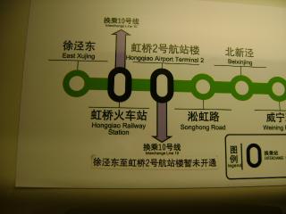 地下鉄2号線の案内表示には、気が早くも来年開通予定の浦東と虹橋の両空港までの延長区間が掲載されていただが、ちょっと違和感を覚えた。