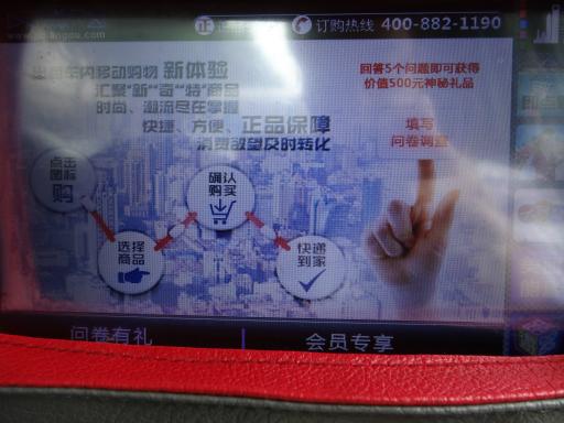 もし仮に画面の反応が良いとしても、やはり時間が十分かという疑問はつきまとい、さらに中国のタクシーのように激しく揺れる車内ではじっくりと買い物など出来ないという気がするのである。