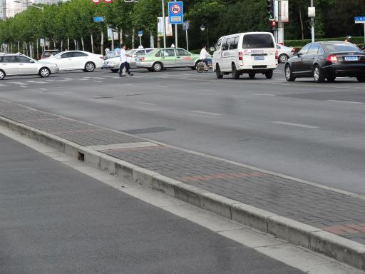 まあアスファルト舗装の欠点は舗装の前の基礎土台がしっかりしてないと、こういった波打ち道路を生みやすいことであり、さらに定期的な補修も必要なのだが、どうも上海の道路管理は補修設定期間が長いのか、こういった歪んだ状態になっている舗装を多く見かける。