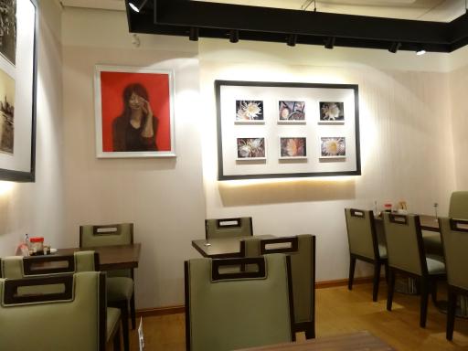 で、店内に入ってみるとトンカツ店の言葉のイメージにそぐわないかと思える程の、清潔で明るい空間になっており、絵や写真が飾られて女性が入りやすい雰囲気になっている。