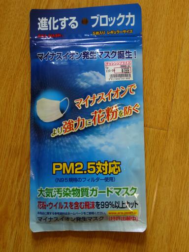 で買ってきたのが写真のマスクで5枚入りで199円。