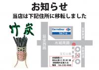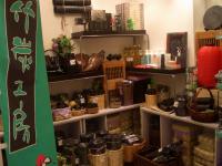 最近移ってきたばかりの店内には黒々とした大小さまざまな竹炭が綺麗なかごに入って並ぶ。