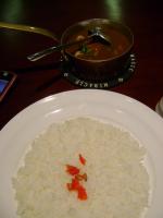 で、出てきたのが写真のカレーである。正直言えばライスは若干硬めで量が少なく不満が残ったが、ルーは刺激的でおいしかった。非常にスパイシーかつ果物(恐らくリンゴ?)系の味が溶け込んでいてジューシーさも残している。 辛味の刺激が強く味の細かい部分まで掴みきれなかったが、味には結構満足した。上海でのカレーレパートリーの一つに加えても良いお店であるので、機会を見つけてまた通いたい。