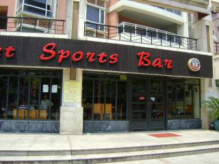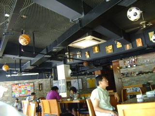 暑さも限界に来ていたので早速飛び込むと、広い店内のいたるところにNBAの選手グッズや写真、サッカー選手の写真などがそこらじゅうに飾ってあった。そうここはスポーツバーなのである。
