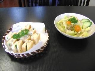 で、肝心の食事のほうだが店員に薦められるまま「マクロビポテトサンド」(28元)とサラダ(+10元)を注文した。マグロビというのは食事法の一つの考え方で、肉類を食べない、植物を残さず根から花の先まで大事に食べるといった思想のようで、ベジタリアン的な考え方の言葉のようである。