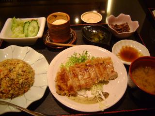 さてお味のほうはというと、表面をカリカリ気味に焼き上げたロース肉をしょうが焼きに使うような生姜醤油をつけて食べる。豚肉にしては非常に上品な食べ方であるがこれが実にうまい。うーんこれはご飯に合いそうだ!