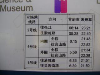 先日地下鉄に乗ったときに、路線図に終電時間が記載してあったので、自分のメモ用として写真をとってみたが、こうやって改めて眺めみると上海の地下鉄の終電時間は日本の感覚からすると異常に早い。