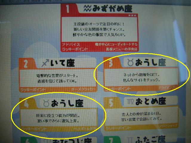 よく見ると3位と4位に「おうし座」が二つ並んでおり、おそらくこれはサイト運営者のミスで、実際にはこのどちらかで運勢順位としてはまあまあ良いほうである。