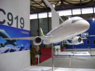 今日、上海の工業博覧会を見てきたのだが、日本企業の集まる環境関連のブースとは別に航空機関連の建物があり、そこで中国初の国産商用ジェット機となるC919の模型が飾られているというので覗いてきた。