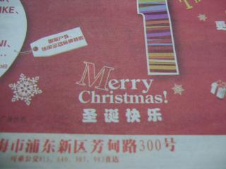 最近上海でも当たり前のように、12月になるとクリスマス商戦が始まり、デパートの看板や新聞の広告にMerry Christmasの文字が躍る。