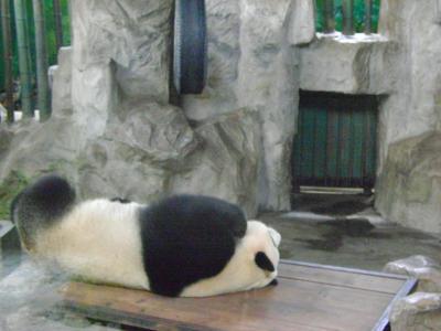 子供達のアイドルは結構オヤジくさい (上海野生動物園のパンダ)