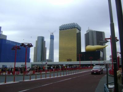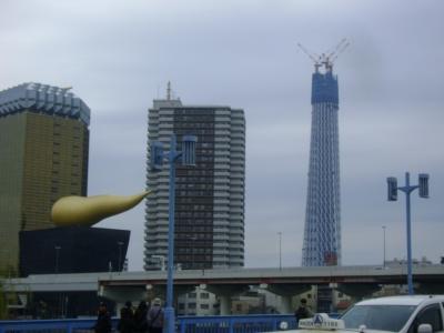浅草から見る建設中のスカイツリーとアサヒビール社屋 |