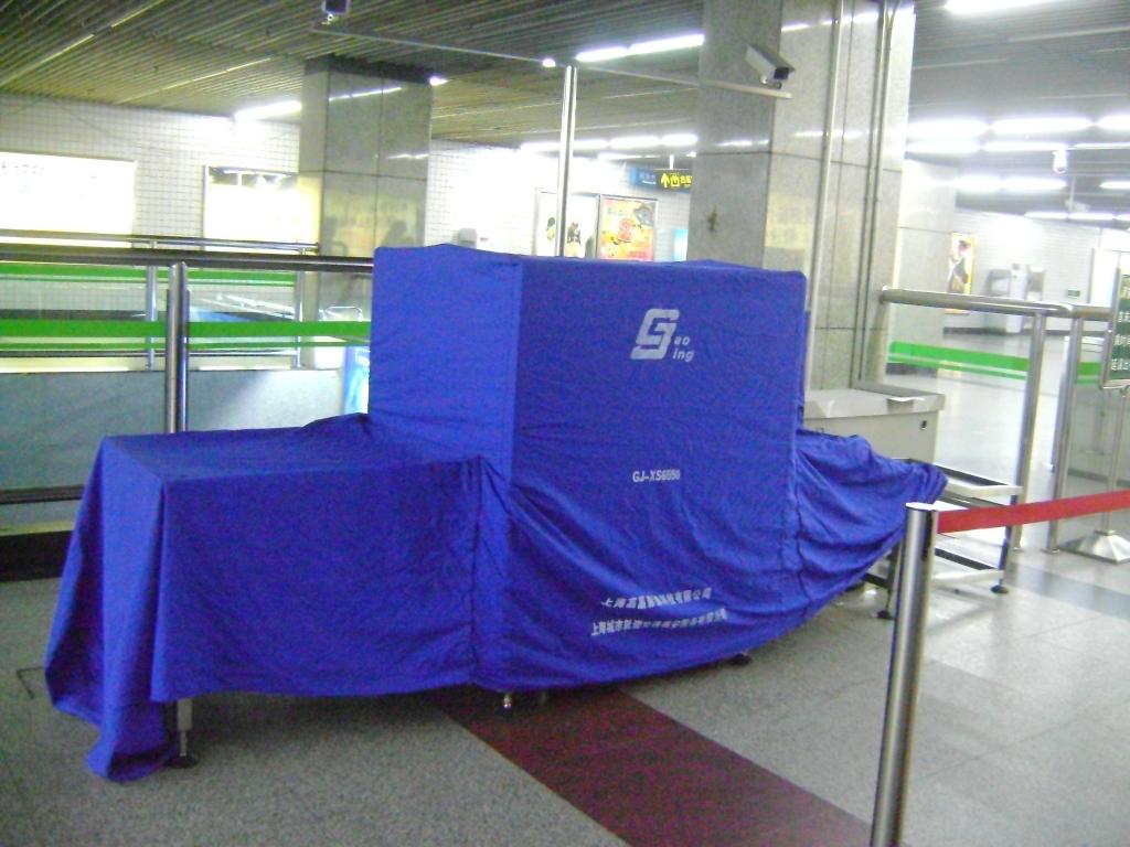 そしてその帰宅途上の22時過ぎに、地下鉄の改札付近で見かけたのはすっぽりとシートがかぶせられた写真のX線荷物検査機であった。