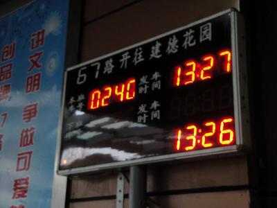 上記の写真は、上海の路線バスの始発地点によく掲示してある発車時刻の案内板である。