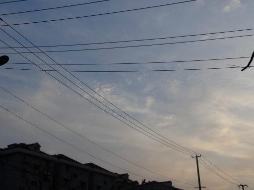 「天高く」とは晩秋の空の枕詞だが。、今日の上海の空は雲が高かった。