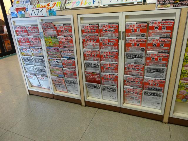 中華圏という意味で言えば台北・香港まではパンフレットが置かれているが定番の海外旅行とも言える上海・北京に関するパンフレットはなかった。