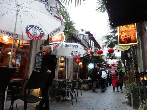 顔の高さからの撮影だと、どうしてもアングルが高過ぎて石畳の床から通路両側の建物の壁までをいっぺんに収めることは難しく、街の雰囲気が捉えづらかったのだが、今回下から仰ぐ角度で撮影することにより、その様子全体がきちんとカメラに収まるのである。